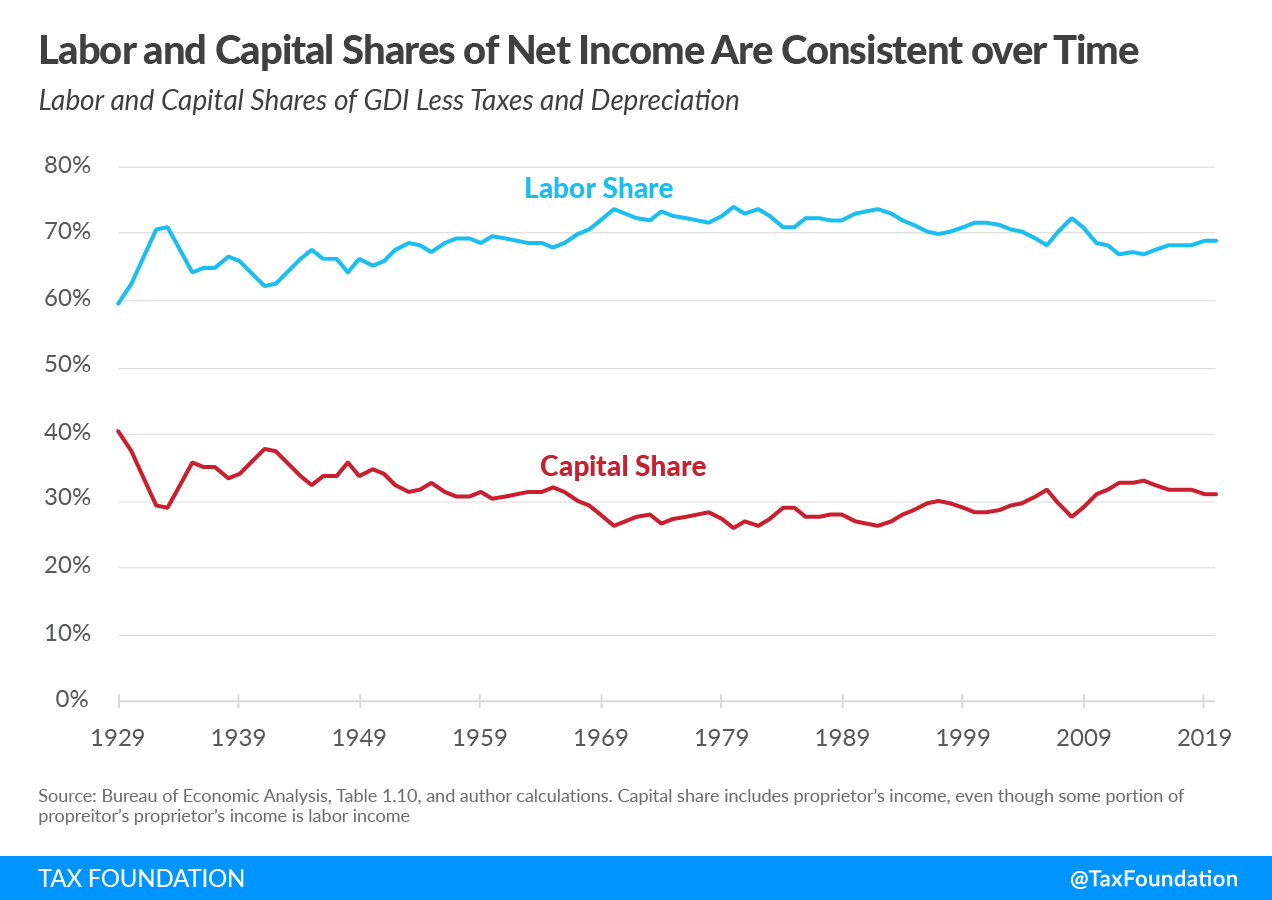 Under Capitalism, firms have the incentive to hire as many people as they possibly can make a profit off of. It doesn't matter if the expected surplus is 100 dollars or 10,000 dollars; there is an incentive to do so. The division between labor and capital rents is naturally determined by the market. Employers in labor markets are forced to compete over workers, only keeping the money they get after paying all expenses (including wages). Over time this has led to a pretty consistent capital rent share of around 30% of GDP.
