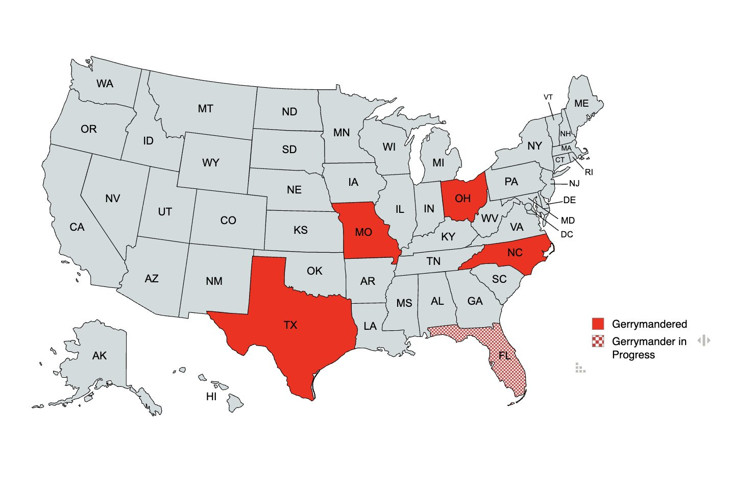 Now, Trump is trying to squeeze even more juice out of the Republican gerrymandering machine, pressuring Texas, Missouri, North Carolina, and Ohio to redraw their maps before the 2026 midterms. Thankfully, it’s already backfiring. Democrats pushed through redistricting measures in California and Virginia; now Democrats have gained more seats than Republicans.