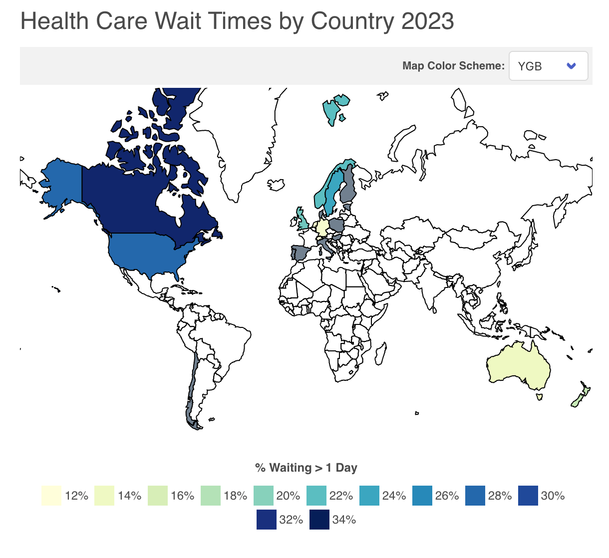 Systems which keep spending at least in appearance private may be more capable of increasing health expenditures at the rate required to accommodate the demand for new innovative but more expensive medical interventions and avoid excessive care rationing. There is a reason why Canada has the longest wait times in the OECD and Switzerland has the shortest. It appears that the political pressure to overly control costs is far smaller when the costs come in the form of premiums hikes (that can be blamed on insurers) and not new or higher taxes.