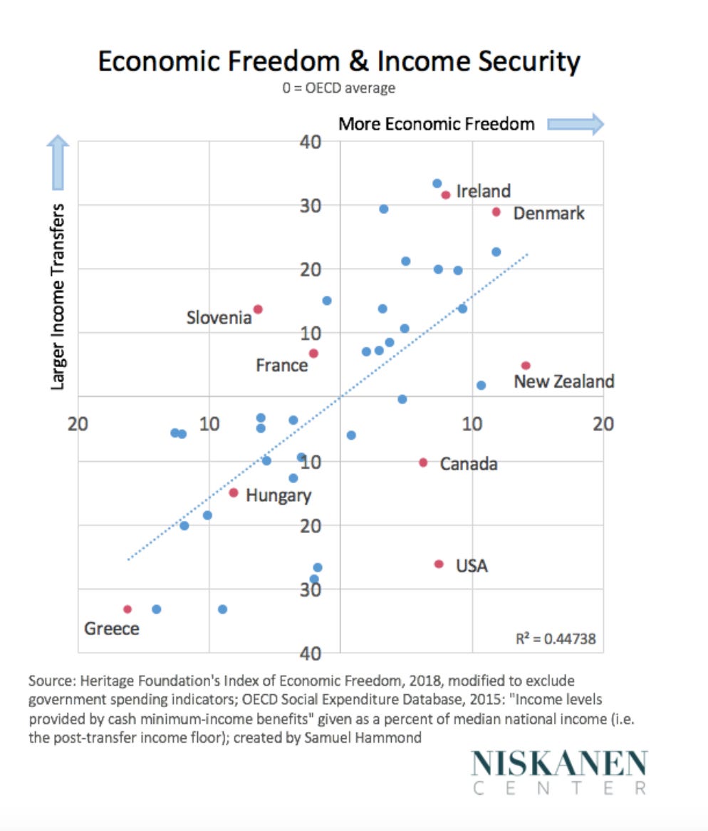 This is the argument provided by Samuel Hammond in his now well-known paper, THE FREE MARKET WELFARE STATE.